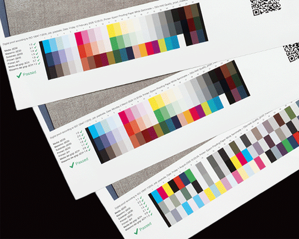 Tutto parte dalla prestampa, dove i file vengono verificati e preparati con attenzione: controllo tecnico, gestione delle cromie, impostazione corretta degli elementi grafici. È qui che si costruiscono le condizioni perché il risultato finale sia fedele all’idea progettuale.